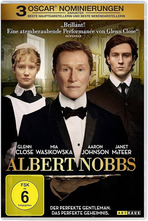 Albert Nobbs (2011): Set in 19th-century Ireland, a woman lives for decades as a male butler to survive economic hardship, only to have her world challenged by a house painter with a similar secret.